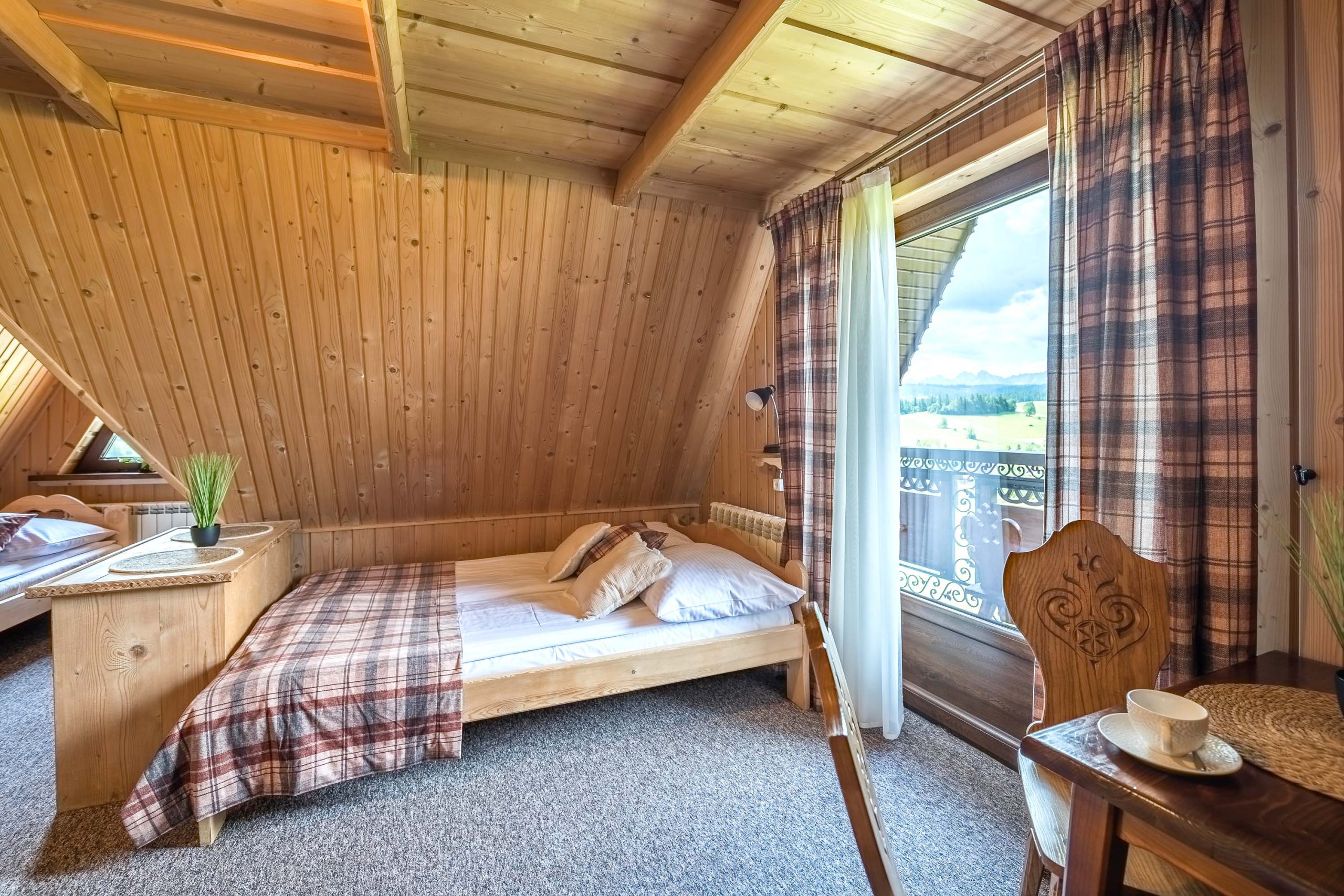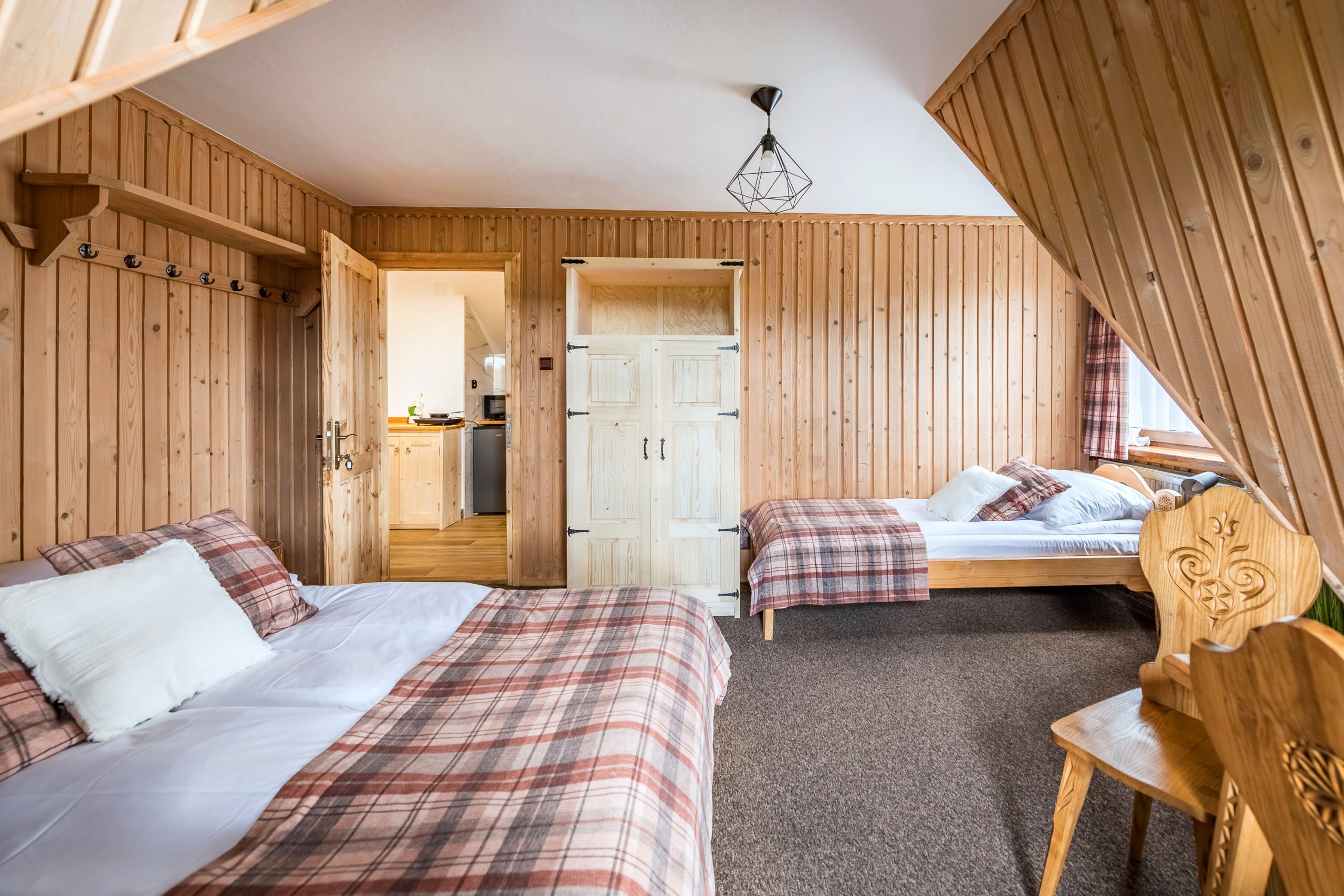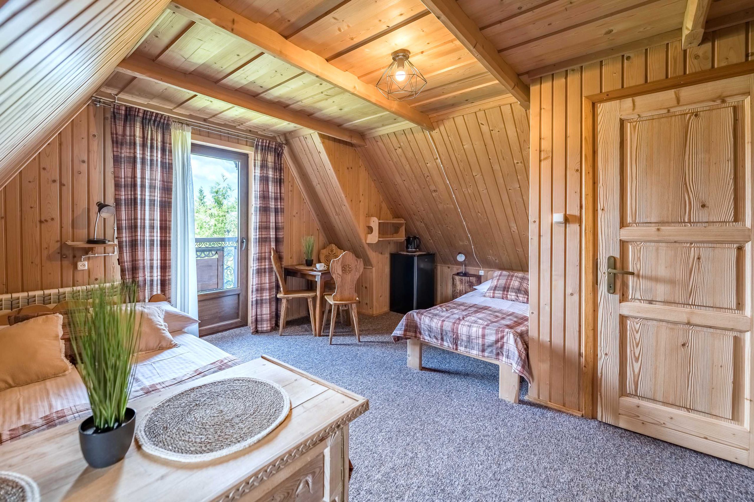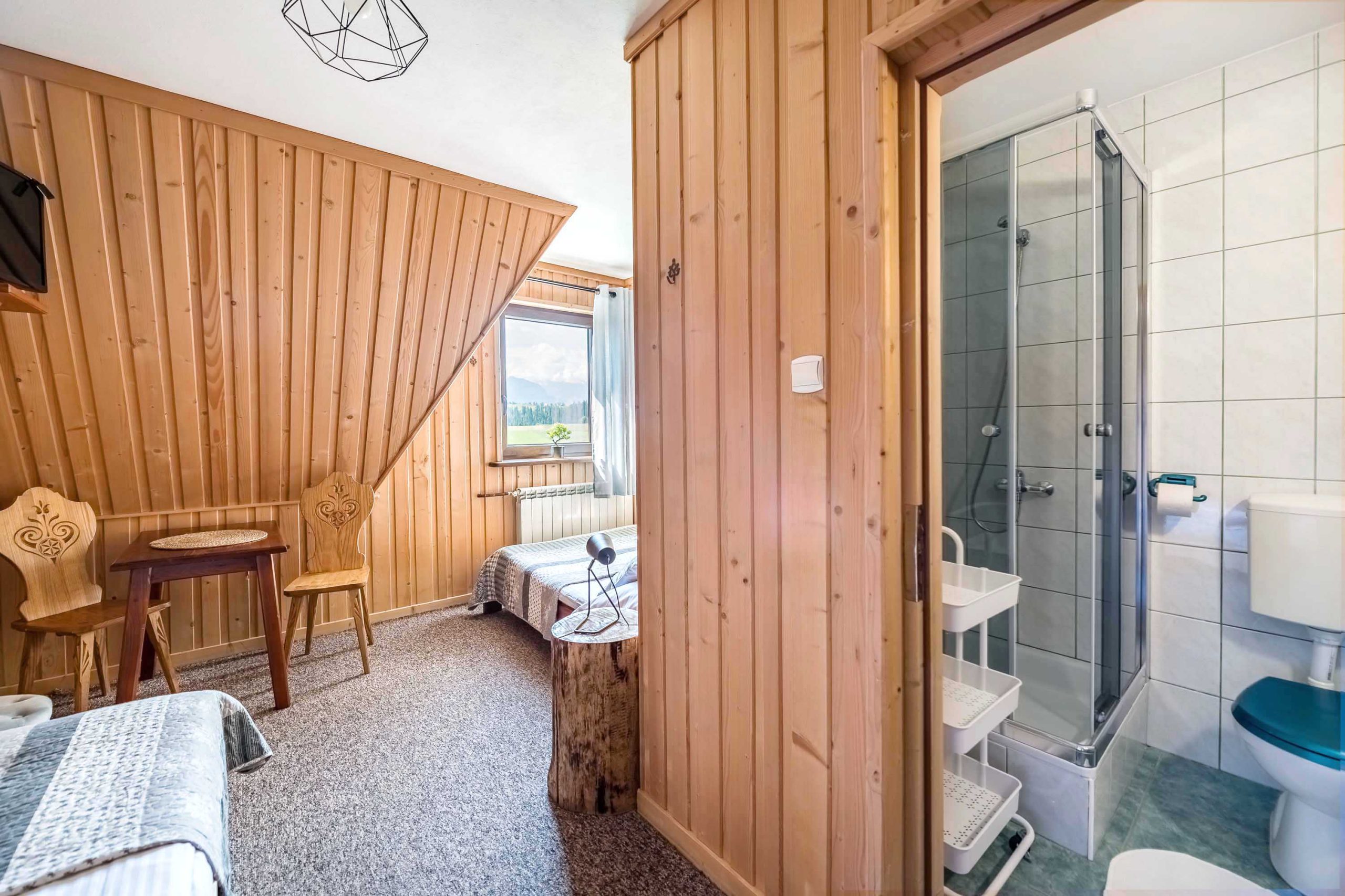 Są to dwa pokoje połączone wspólnym korytarzem. Z balkonu jednego z pokoi roztacza się piękny widok na całą panoramę Tatr.